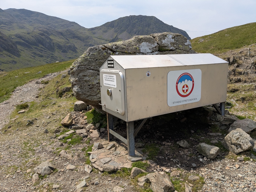 The Styhead pass is an ancient pack-hose route that connects the valleys of Borrowdale and Wasdale. It is a good wide path which follows Styhead Beck (stream) from Seathwaite Farm in Borrowdale up to Styhead Tarn (mountain lake) and then up to the head of the pass. You will know when you have got there because there is a mountain rescue stretcher box, which is also a warning that walking in these mountains can sometimes go wrong – always check the weather forecast and don’t take risks. From the top of the pass the path descends into Wasdale, but for this walk this is the point to decide which way to return to Seathwaite Farm.
